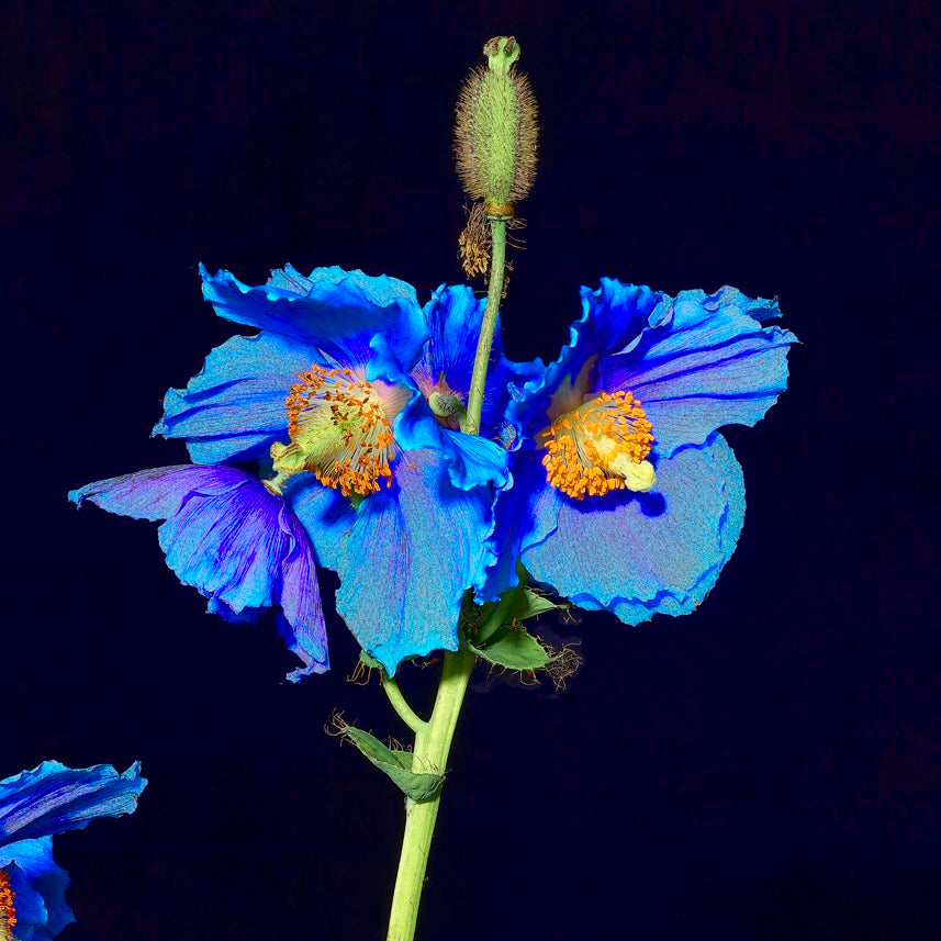 A century ago the Himalayan blue poppy was close to extinction. This rare, stunningly beautiful flower was saved from extinction by the British perennial expert Frank Kingdon Ward—a man onan extraordinary mission to save the plant from medicinal hunters digging up its roots. Kingdon Ward took many Himalayan mountain expeditions to find blue poppy seeds, returning for more after he couldn’t get them to germinate. At last, he displayed blue poppy flowers at the 1926 Chelsea Flower Show, which caused a sensation. He distributed seeds to gardens around the world and now, 100 years later, efforts to save the blue poppy continue in Pennsylvania at Longwood Gardens, in Quebec at Reford Gardens and in Scotland at Royal Botanic Garden where the plants receive the special care, climate and soil they need to survive. What makes this centennial celebration important is that earthly concerns and distress over industrial environmental issues have sidelined concerns for declining treasures of the botanical world. This exhibition shines a light on how people in different parts of the world are working to save one tiny, endangered flower that is difficult to grow: the Himalayan blue poppy (Meconopsis betonicifolia).